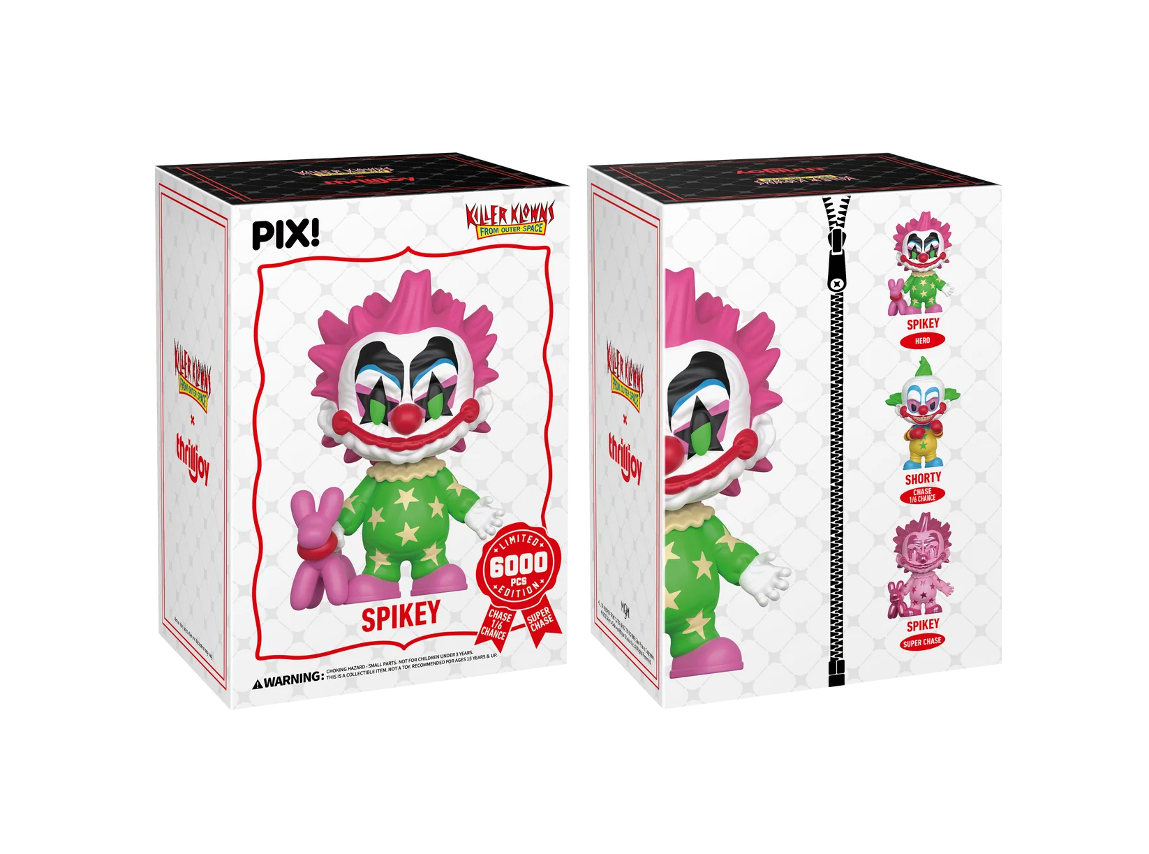 Get ready, the circus is about to crash into town! Featuring Spikey with his iconic pink hair, bright green eyes, painted face, long grin, in his classic green costume with yellow stars, holding his pink balloon dog! Spikey is marching straight to your shelves! This PIX! is perfect for all fans who love classic horror films!
